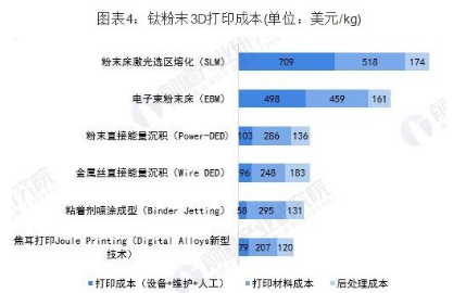 原材料是金屬3D 打印的制造成本中占比最大的一部分。DigitalAlloys以鈦粉末(6Al-4V)為例,對于SLM、EBM、DED、Binder Jetting、Digital Alloys等主流的金屬3D打印工藝的制備成本進行統(tǒng)計,發(fā)現(xiàn)每千克產(chǎn)品的打印成本中原材料成本是占比最高的(除SLM工藝外),同時隨著成型精度、成型質(zhì)量、打印時間的增長,設(shè)備、維護和人工的占比逐步提升,在打印質(zhì)量最好的SLM工藝中,設(shè)備、維護和人工成本是占比最高的,其中也有專利保護因素,但是在打印效率越來越高、規(guī)模效應(yīng)越來越明顯的趨勢下,材料成本占比將進一步提升。