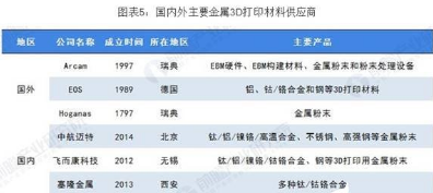 近年來,隨著3D打印商業(yè)化應(yīng)用持續(xù)推廣,打印材料的重要性愈發(fā)凸顯。目前國內(nèi)的基礎(chǔ)3D打印材料已基本滿足國產(chǎn)設(shè)備的增材制造需要,但高性能金屬粉末耗材依然依賴進口,國產(chǎn)材料在純凈度、顆粒度、均勻度、球化度、含氧量等對打印成品性能影響較大的原料指標方面相比國外仍存在較大的差距。德國的EOS、TLS,瑞典的Arcam、Hoganas、Sandvik,比利時的Solvay等具備較強實力的金屬3D打印耗材供應(yīng)商多數(shù)成立于2000年以前,在粉末冶金或金屬打印設(shè)備領(lǐng)域有較強的技術(shù)積淀。國內(nèi)目前能提供高質(zhì)量金屬粉末的公司包括中航邁特、飛而康、塞隆金屬、西安歐中、鉑力特以及新進入的鋼研高納、頂立科技等,這些公司或相關(guān)業(yè)務(wù)多數(shù)成立于2010年以后,近年來發(fā)展較快。