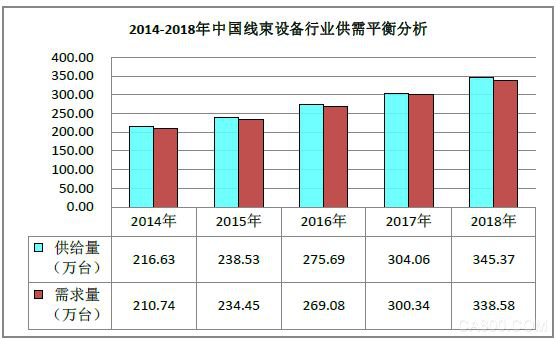 2014年我國(guó)線束設(shè)備行業(yè)產(chǎn)量為242.46萬(wàn)臺(tái),2018年為379.52萬(wàn)臺(tái),同比2017年增長(zhǎng)12.18%。