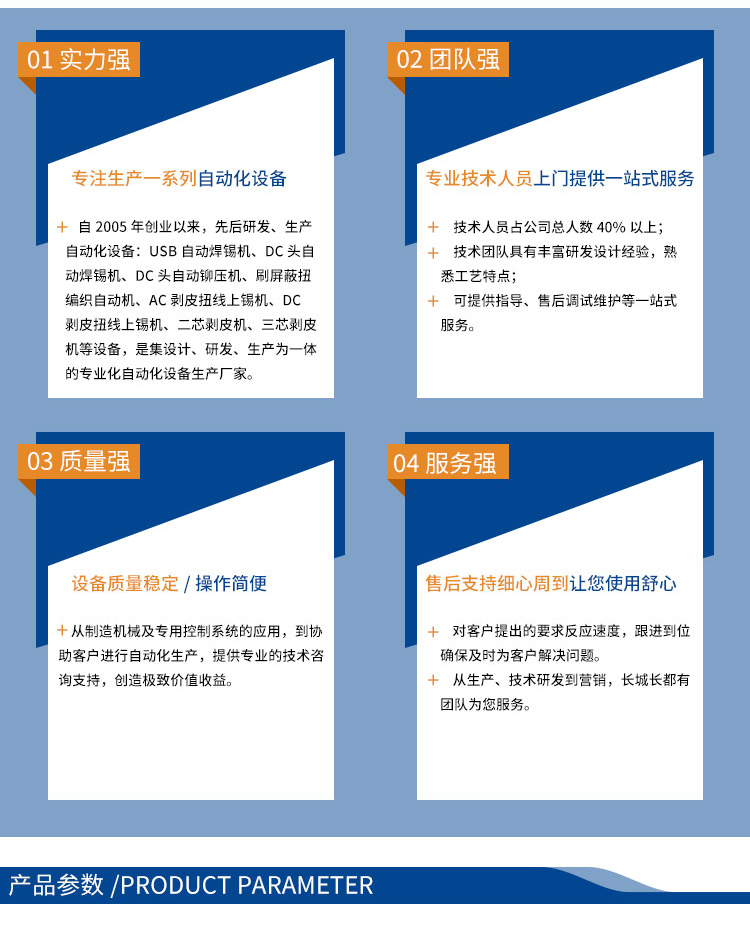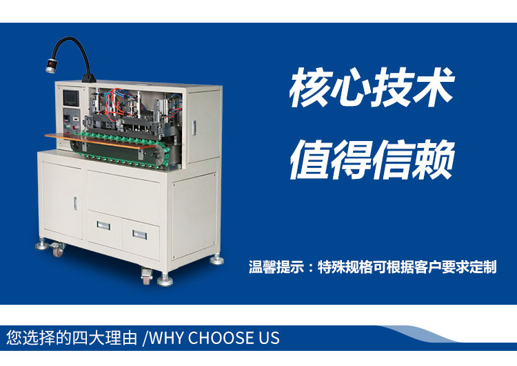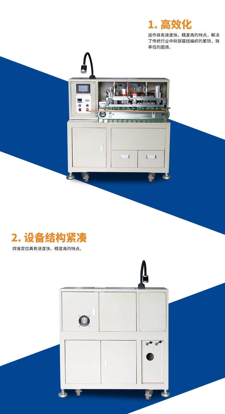 產(chǎn)品介紹:集分線、剝線、扭線、鍍錫、切平、一次完成,品質(zhì)穩(wěn)定,操作簡(jiǎn)單,效率高,較之原始工作方式節(jié)省4個(gè)工位,提高效率。