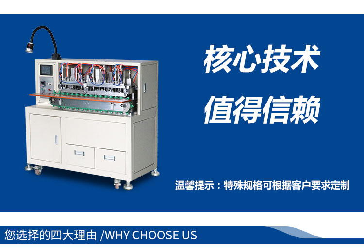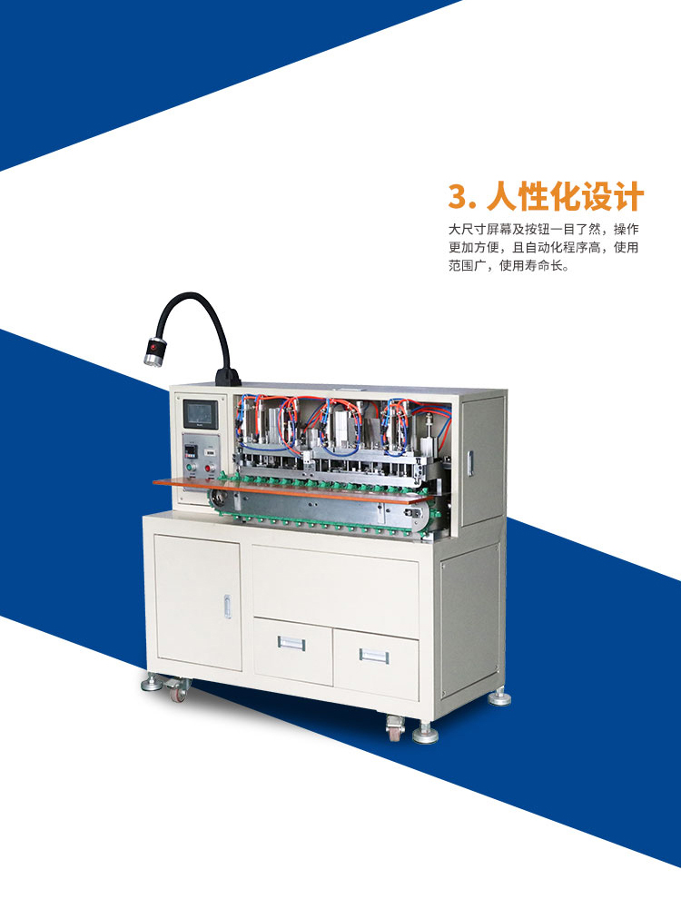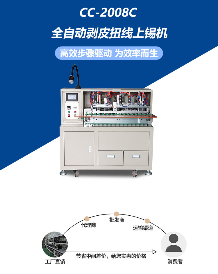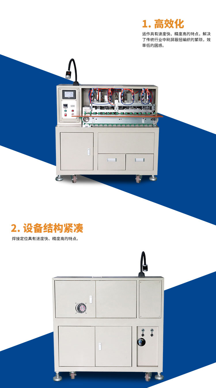 產(chǎn)品介紹:集分線、剝線、扭線、鍍錫、切平、一次完成,品質(zhì)穩(wěn)定,操作簡單,效率高,較之原始工作方式節(jié)省4個(gè)工位,提高效率。