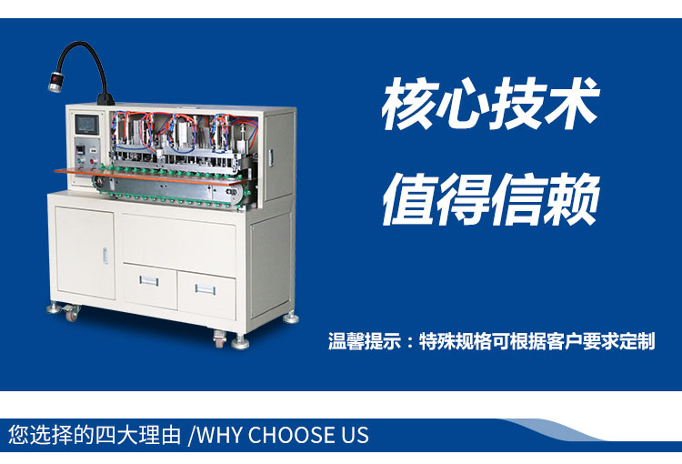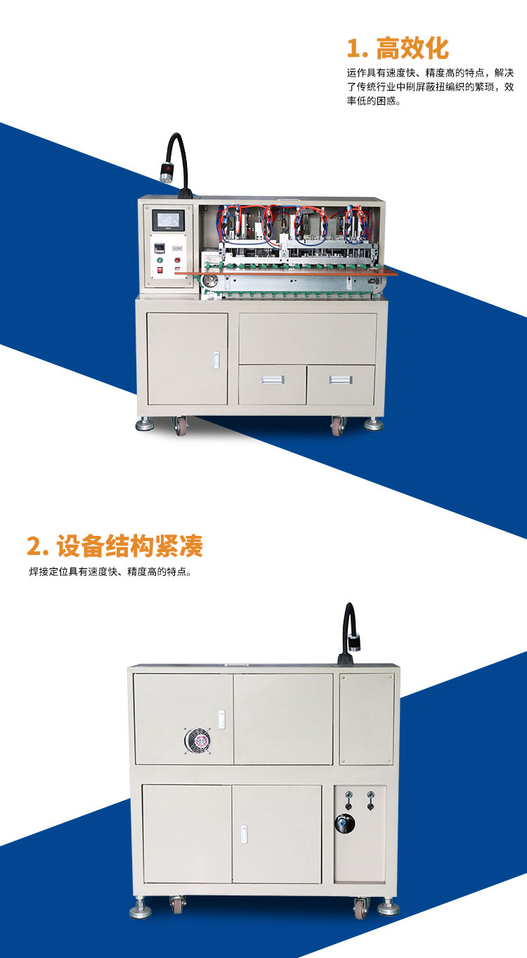 產(chǎn)品介紹:集分線、剝線、扭線、鍍錫、切平、一次完成,品質(zhì)穩(wěn)定,操作簡(jiǎn)單,效率高,較之原始工作方式節(jié)省4個(gè)工位,提高效率。