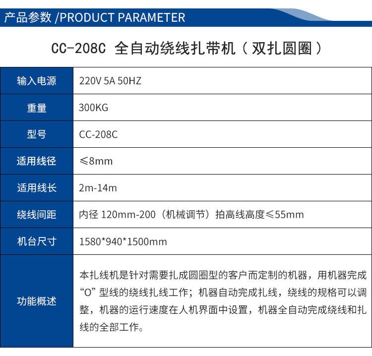 • CC-208C 全自動(dòng)繞線扎帶機(jī)(雙扎帶)